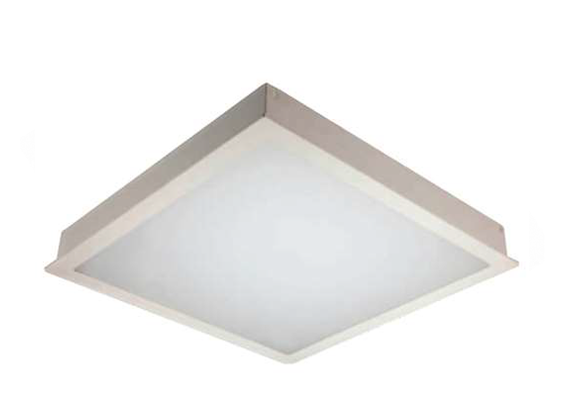 2’x2′ LED Luminare, CRCA housing, white powder coated, with polymer diffuser complete with accessories, suitable for surface mounting applications.